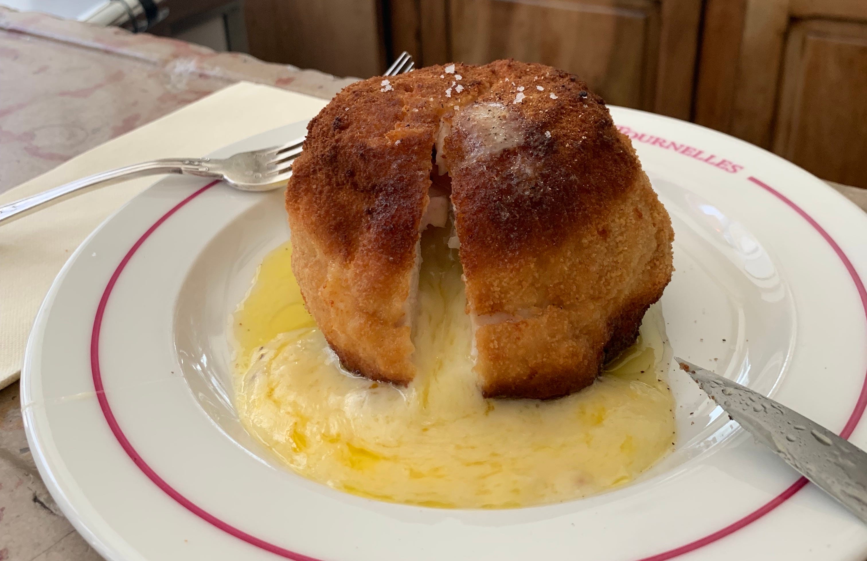 1. Back to Bistrot des Tournelles, which I visited this summer with the team from Milk Street, and where I had the enormous pleasure of digging into that behemoth of a cordon bleu up top. Part of me wants to order something different this time; part of me isn't sure I can bring myself to deviate from this delicious bomb of cheese, ham, and turkey.