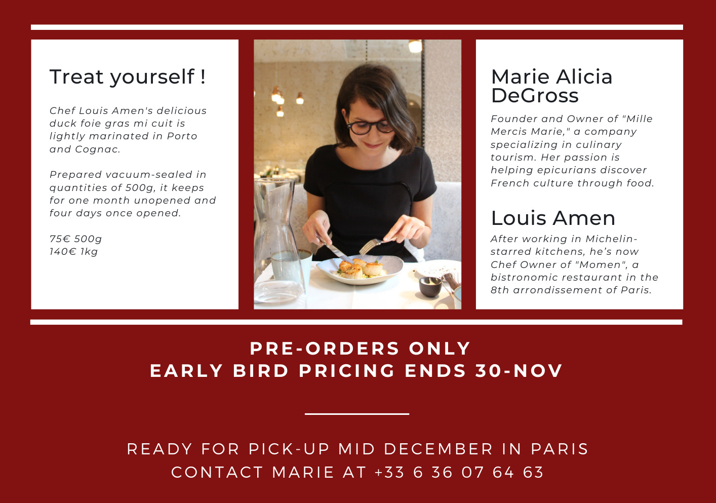 3. Well, it’s not me exactly, but my dear friend and colleague Marie is selling excellent foie gras for all of your holiday needs.